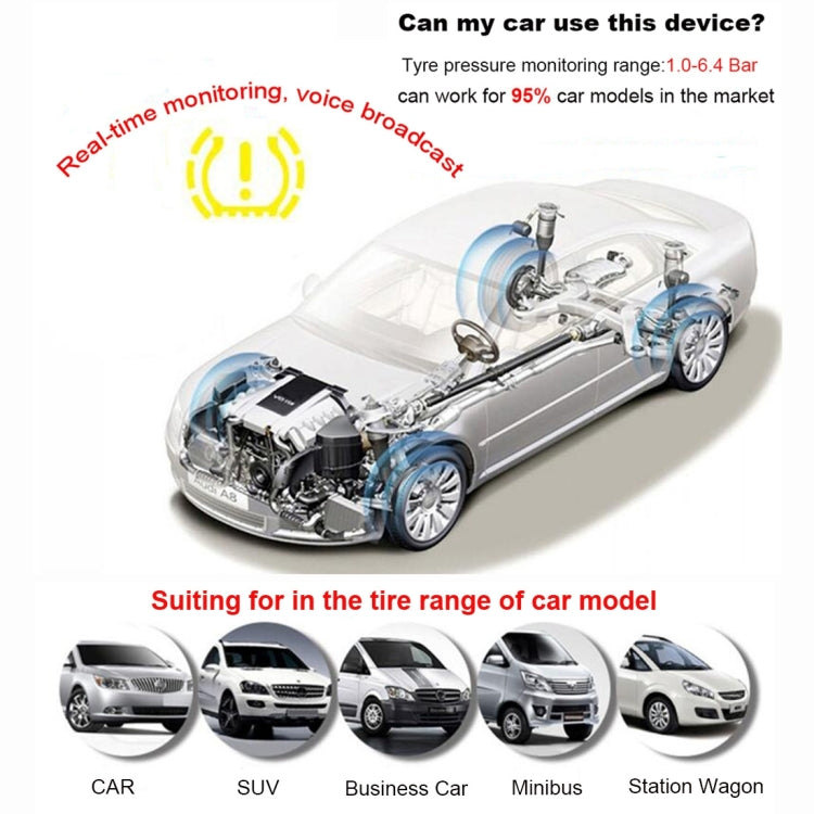 VC601 TPMS 4 Built-in Sensors Tire Pressure Monitoring Alarming System Diagnostic-tool with Bluetooth 4.0 Work on Android / iOS / iPad