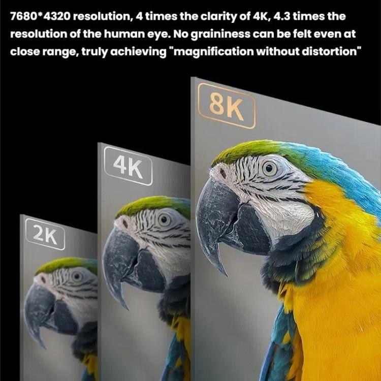 1. 7680 x 4320 resolution, clarity is 4 times that of 4K, 4.3 times the resolution of the human eye, and the graininess is not felt even at close range