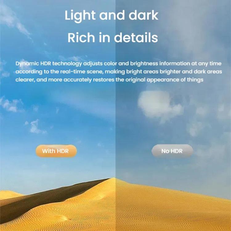 2. Dynamic HDR technology adjusts color and brightness information at any time according to the real-time scene, bright in bright places, clear in dark places, and more accurately restores the original appearance of things