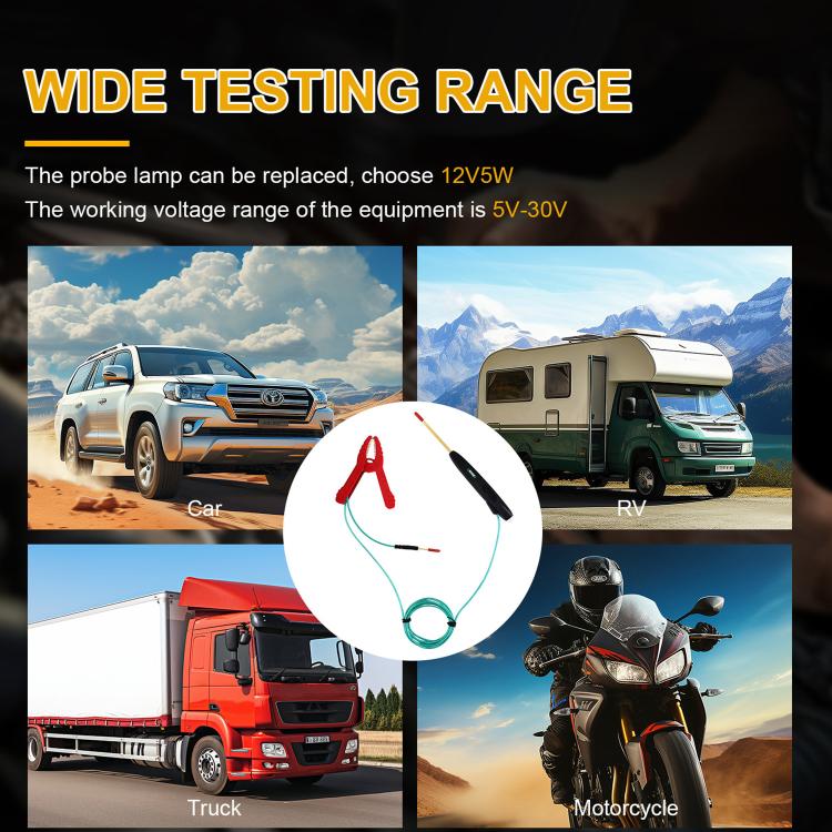 1. Test light remedy the various deficiencies, VT100 has multi-function, such as automotive voltage tester, positive and negative polarity tester, car fuse tester, signal tester, design with exquisite workmanship, practical and durable, easy to use.