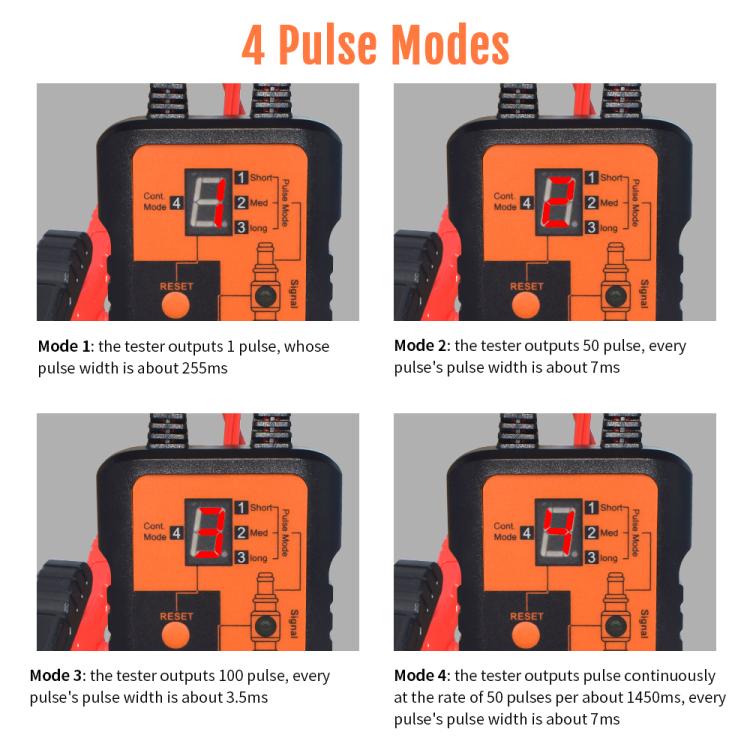 2. It has four pulse modes, the user can choose a suitable mode according to the test needs, and the continuous mode (mode 4) helps to identify the good or bad of the injector.