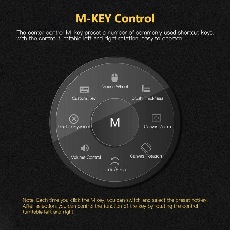 4. The overall control is composed of a magic wheel and a center control key (M-KEY). The flywheel comes with 4 shortcut keys. With the M control key, you can customize a variety of shortcut key combinations.