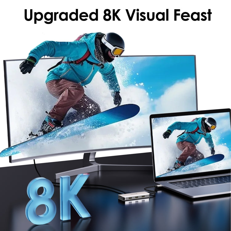 2. Interface: 1 x Host Type-C, 1 x HD(4K 60Hz), 1 x VGA(1080P 60Hz), 3 x USB-A 2.0(480Mbps), 2 x DP(8K 60Hz)