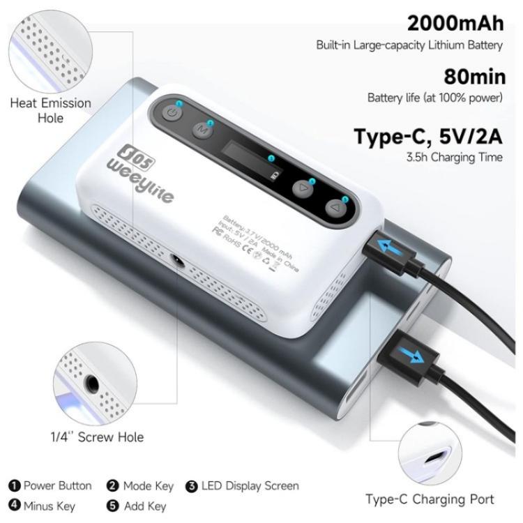 4. Portable And Rechargeable: Lightweight and small size, easy to carry; built-in 3.7V/2000mAh rechargeable battery, can be used for a long time for about 80 minutes.