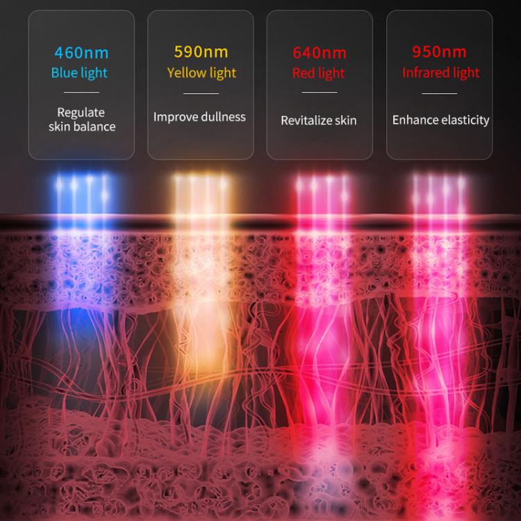 2. Four light sources: red light 640nm/blue light 460nm/yellow light 590nm/infrared light 950nm