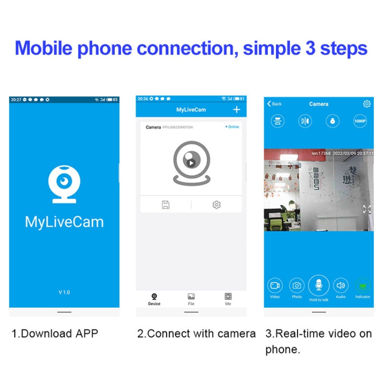2. With hotspot network, in the absence of Internet scenarios, can be directly connected to cell phones to achieve close monitoring and real-time recording