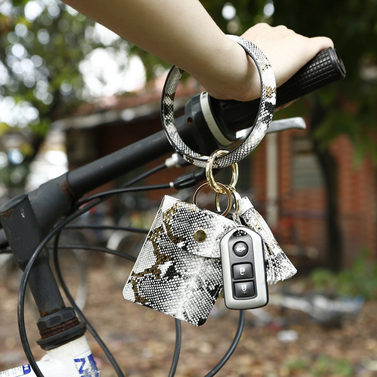 Wrist Keychain Coin Purse PU Leather Snake Print Bracelet Card Case