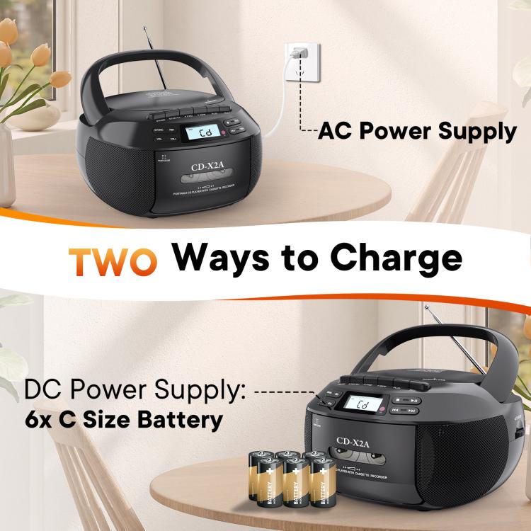 X2A Portable Cassette Player Stereo Bluetooth AM/FM/MP3 Music CD Player Tape Recorder