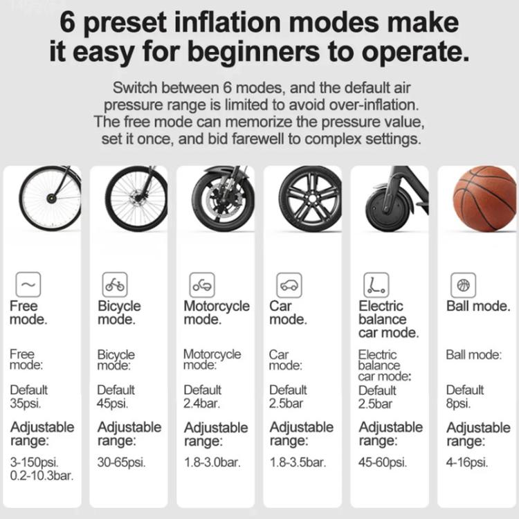3. Preset tire pressure, stop when full, accurately display real-time tire pressure