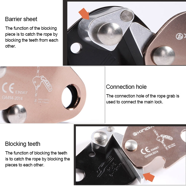 XINDA EN567 Outdoor Rock Climbing Aerial Work Anti-fall Rope Gripper for 8-13mm Diameter Rope