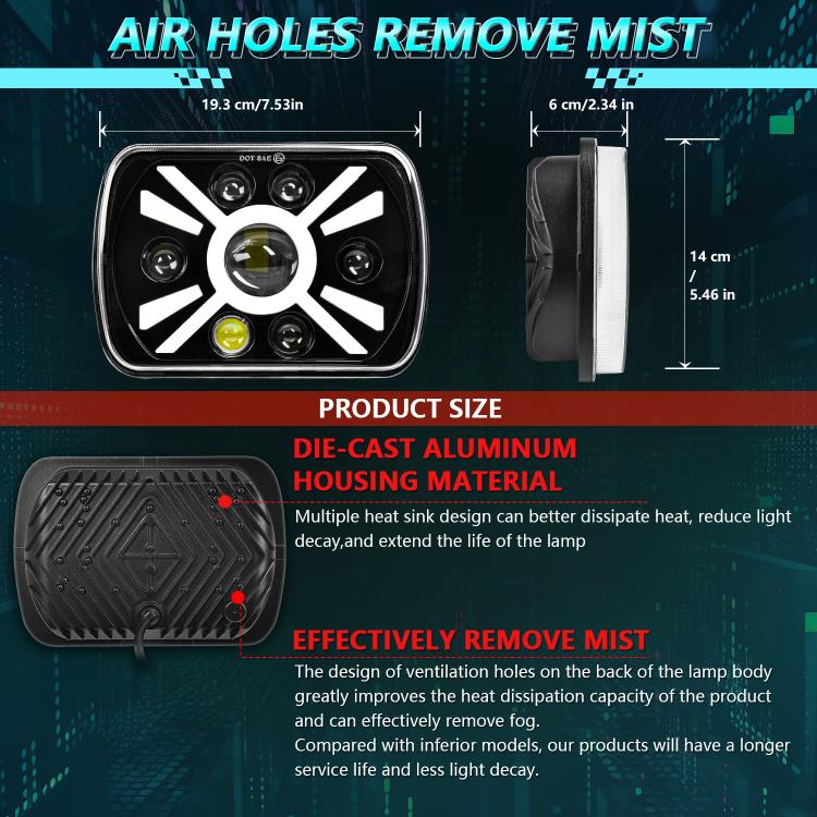 1. 5X7 square headlights, using high-brightness imported custom chips, the brightness is long-lasting, the lamp bead structure is composed of 1 high-brightness focusing large lens lens + 8 small lenses, which is different from the lens-style square lights on the market. The brightness is greatly increased by 400%, a more reasonable and scientific lighting combination, and a new DRL design, which is more visually impactful.