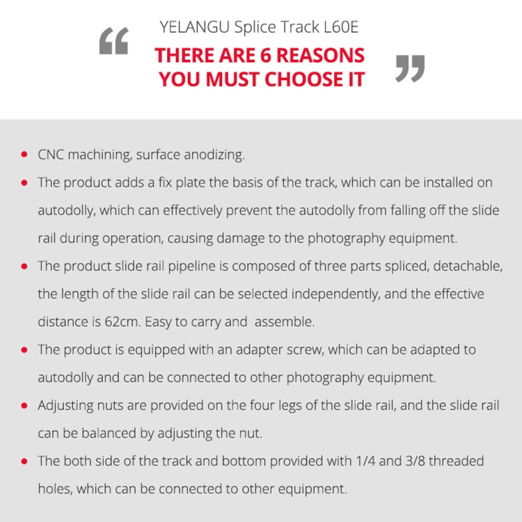 YELANGU YLG0119A 60cm Splicing Slide Rail Track + Trolley Rail Buckle for SLR Cameras / Video Cameras