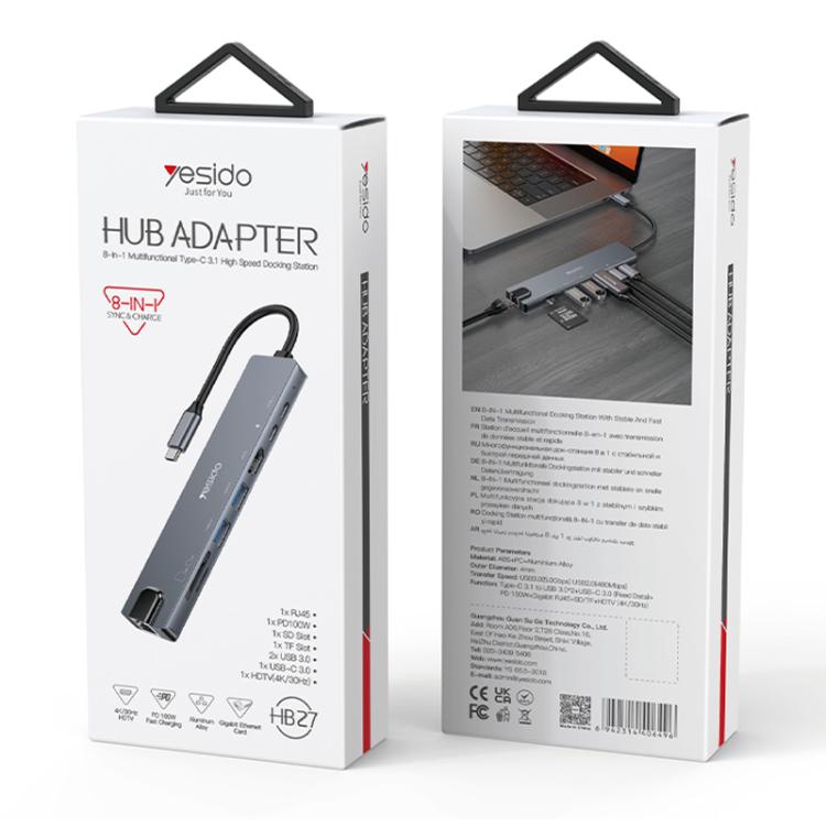 Yesido HB27 8 in 1 Type-C 3.1 Multifunctional HUB Adapter Docking Station