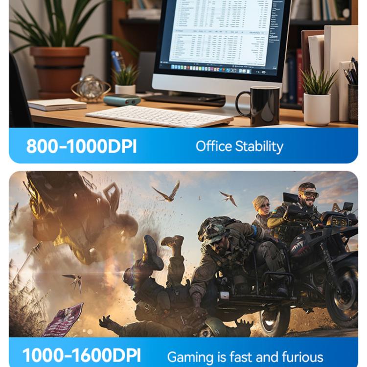 4. Adjustable DPI Settings: Choose from 800, 1200, or 1600 DPI settings to customize your mouse sensitivity for different tasks and preferences.