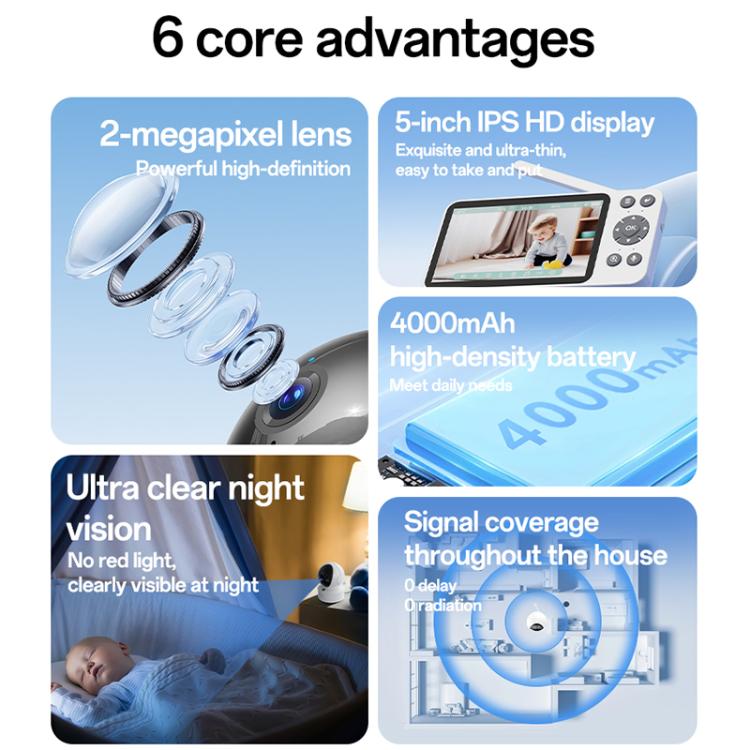 Yesido KM28 5 inch LCD Screen 2.4G WiFi Baby Monitor Care Camera, Plug: UK Plug