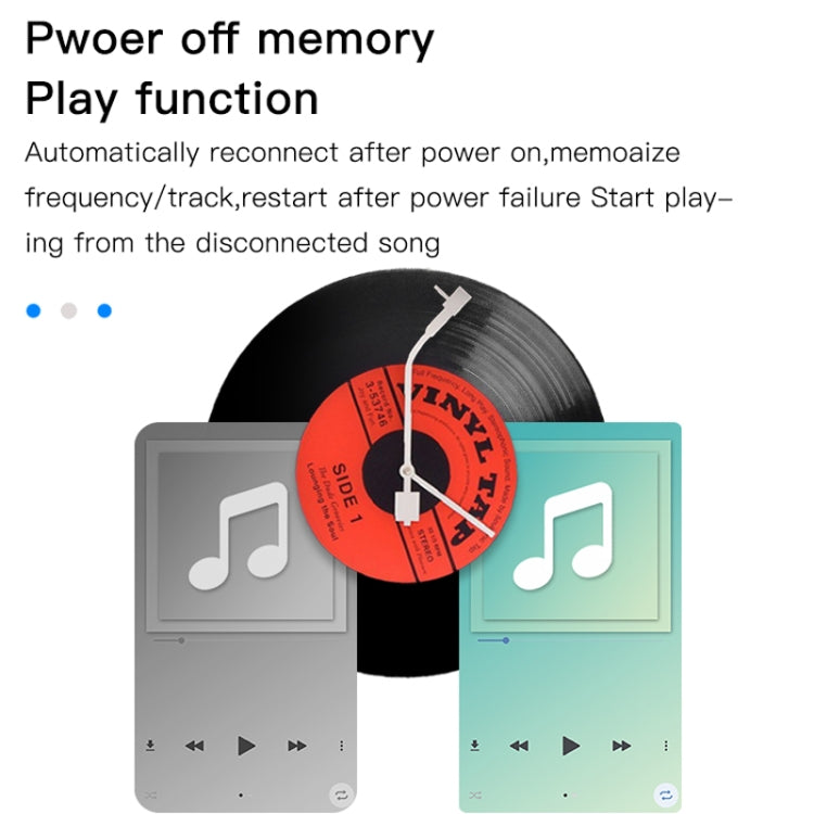 6. Power-off memory playback function, automatically connect back to the power on, memory frequency / tracks, restart after a power failure, from the disconnected song to start playing