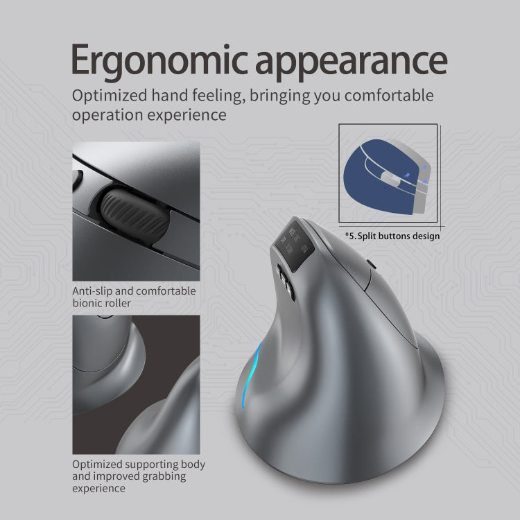 ZELOTES F-26C 8-Keys 2.4G+Bluetooth Dual-Mode LED Display Vertical Grip Wireless Mouse