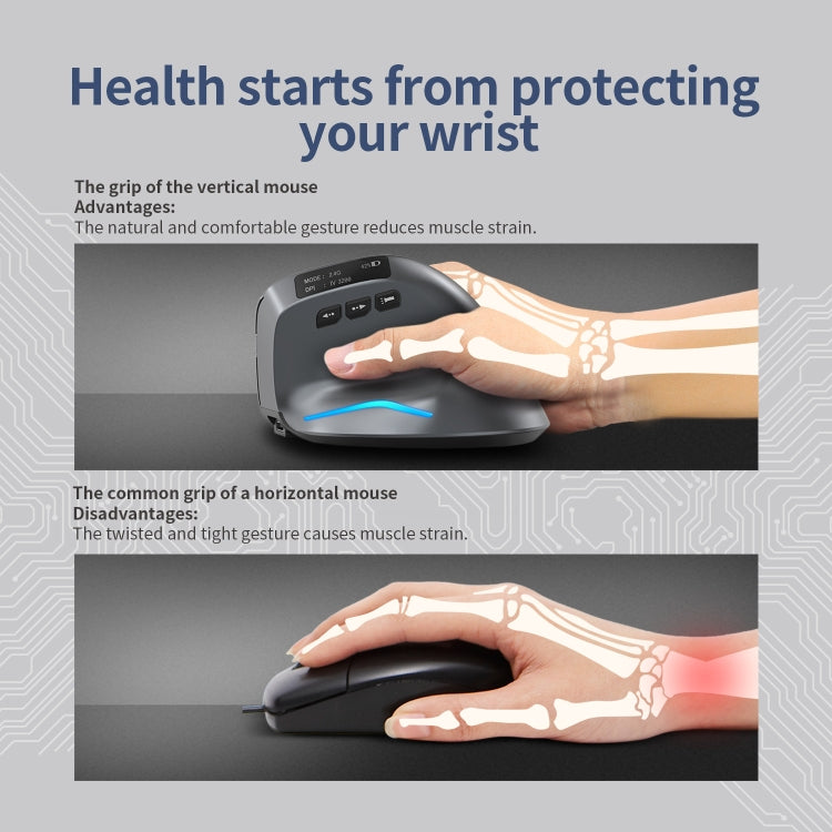 1. Upright mouse grip, comfortable gestures, reduce muscle damage